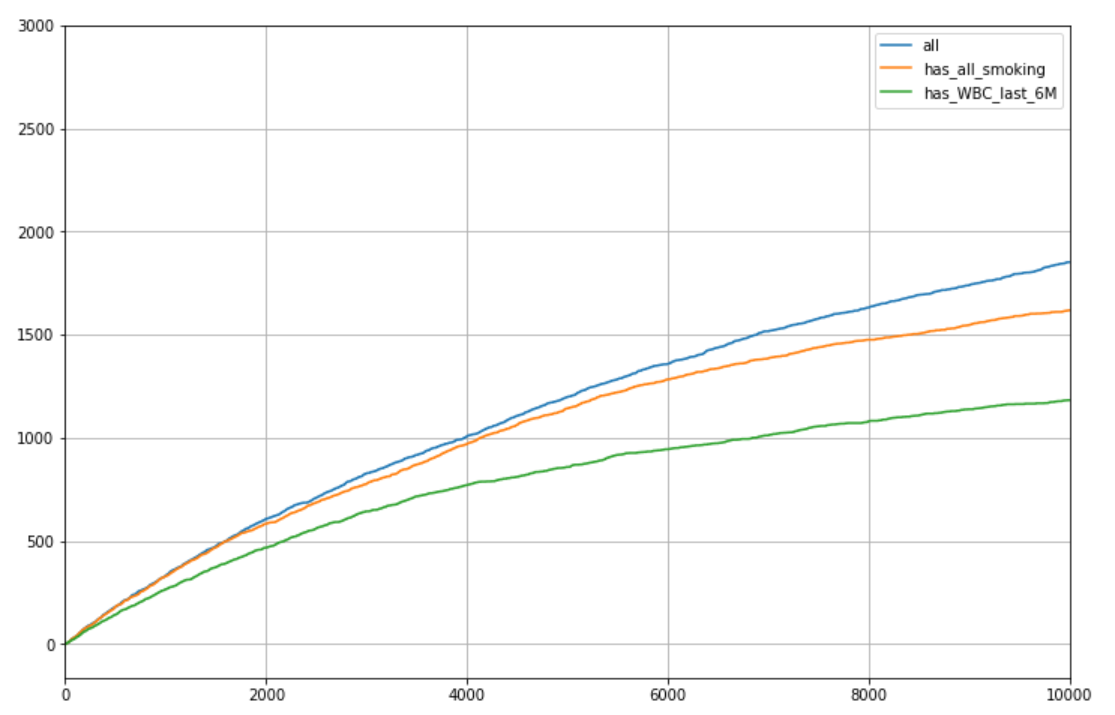 - if we take just patients with WBC in the last 6 months (1438 eligible on average)