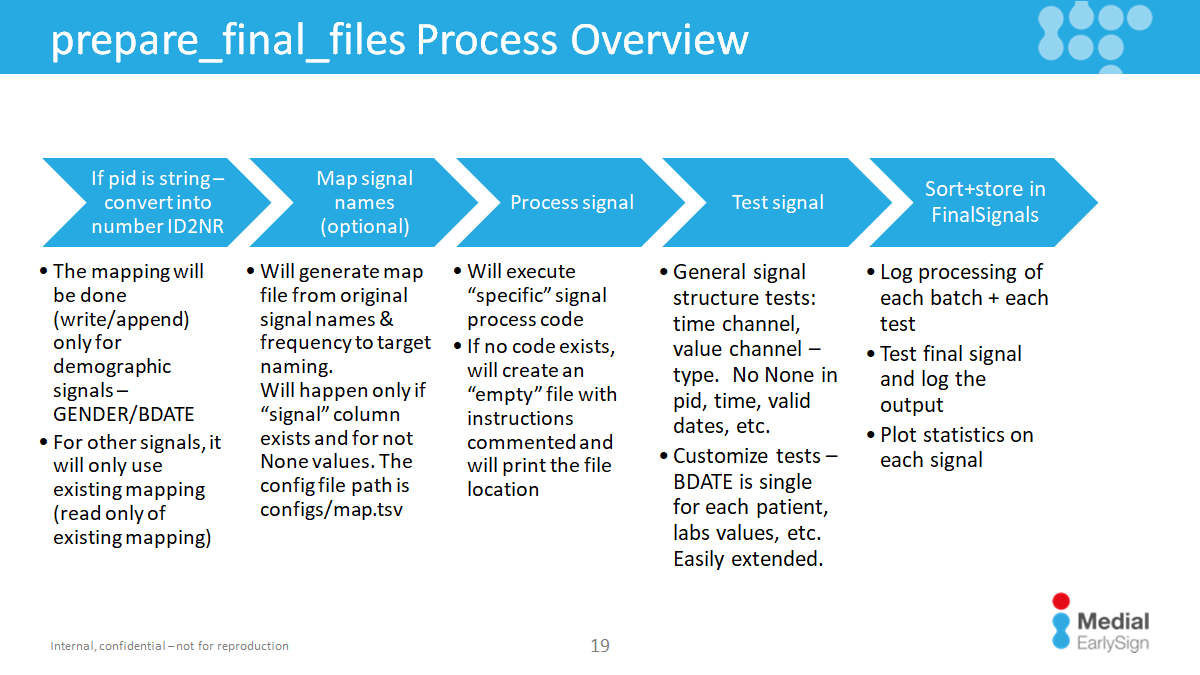 - Best Practice for PID Mapping: Start by processing demographic signals like BDATE and GENDER. This is because if patient IDs (pid) are strings, the ETL will create a numeric-to-string mapping based on these demographic signals. This mapping is then used for all other signals, ensuring consistent pid values across the entire dataset. More details on the pipeline can be seen next Higher-Level Pipeline Flow