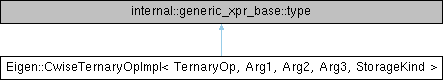 Inheritance diagram for Eigen::CwiseTernaryOpImpl< TernaryOp, Arg1, Arg2, Arg3, StorageKind >: