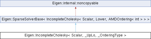 | typedef SparseSolverBase< IncompleteCholesky< Scalar, _UpLo, _OrderingType > > | Base |