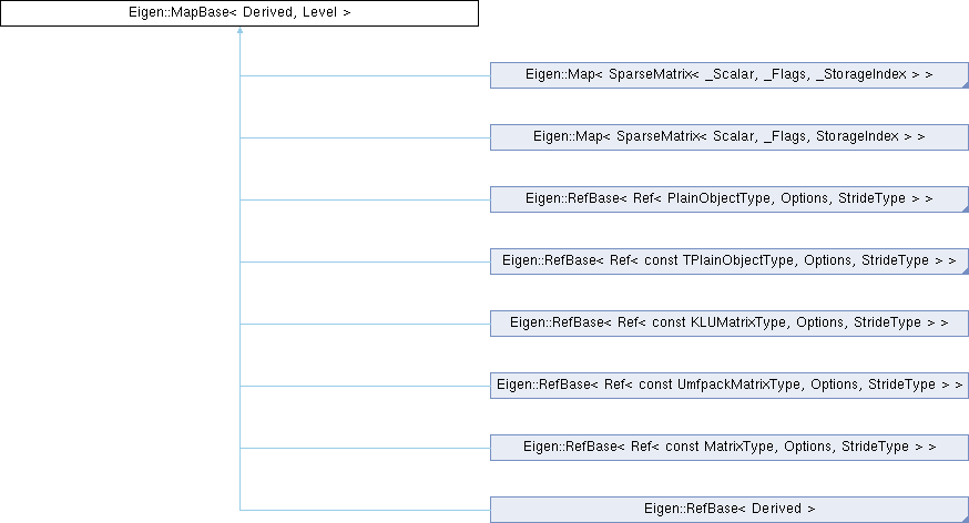 Inheritance diagram for Eigen::MapBase< Derived, Level >: