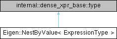 This class is the return type of MatrixBase::nestByValue() and most of the time this is the only way it is used.