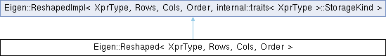 This class represents an expression of either a fixed-size or dynamic-size reshape. It is the return type of DenseBase::reshaped(NRowsType,NColsType) and most of the time this is the only way it is used.