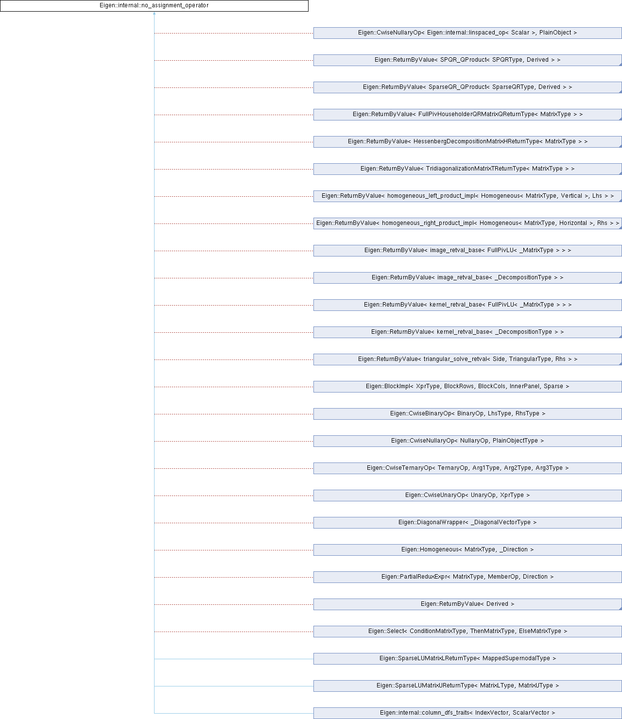 Inheritance diagram for Eigen::internal::no_assignment_operator:
