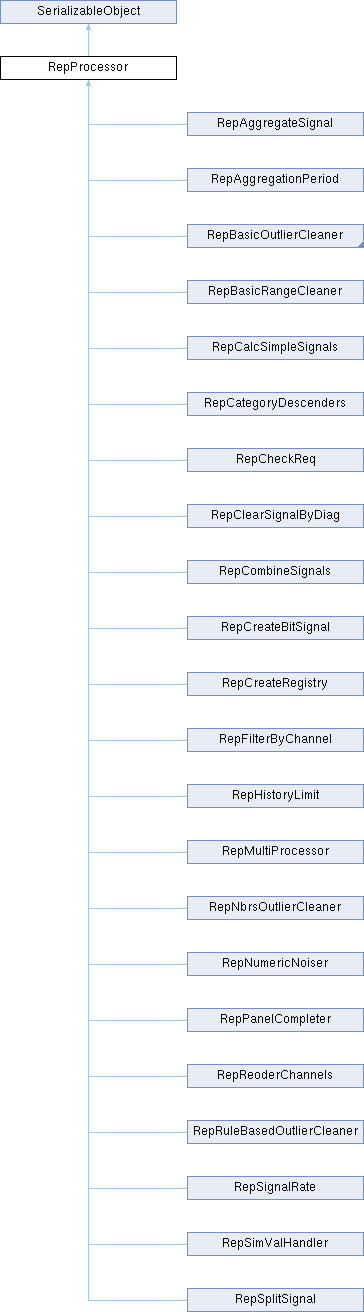 Reimplemented in RepCategoryDescenders, RepClearSignalByDiag, RepCreateRegistry, RepFilterByChannel, RepMultiProcessor, RepRuleBasedOutlierCleaner, RepSimValHandler, RepPanelCompleter, RepCalcSimpleSignals, RepCombineSignals, RepSplitSignal, RepAggregationPeriod, RepBasicRangeCleaner, RepSignalRate, RepAggregateSignal, RepCreateBitSignal, and RepCheckReq.