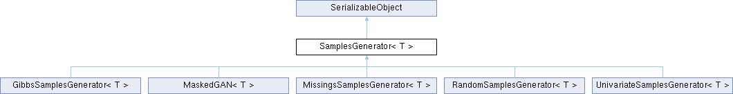Reimplemented in GibbsSamplesGenerator< T >, MaskedGAN< T >, MissingsSamplesGenerator< T >, RandomSamplesGenerator< T >, and UnivariateSamplesGenerator< T >.