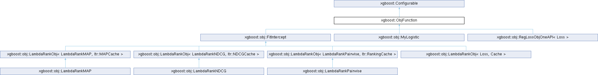 Implemented in xgboost::obj::LambdaRankObj< Loss, Cache >, xgboost::obj::LambdaRankObj< LambdaRankMAP, ltr::MAPCache >, xgboost::obj::LambdaRankObj< LambdaRankNDCG, ltr::NDCGCache >, xgboost::obj::LambdaRankObj< LambdaRankPairwise, ltr::RankingCache >, xgboost::obj::MyLogistic, and xgboost::obj::RegLossObjOneAPI< Loss >.