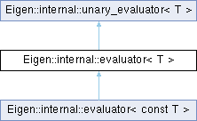 Inheritance diagram for Eigen::internal::evaluator< T >: