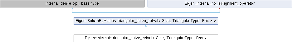 Public Member Functions inherited from Eigen::ReturnByValue< triangular_solve_retval< Side, TriangularType, Rhs > > | |