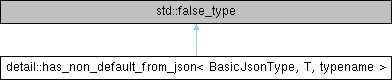 Inheritance diagram for detail::has_non_default_from_json< BasicJsonType, T, typename >: