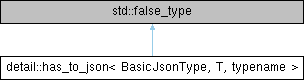 Inheritance diagram for detail::has_to_json< BasicJsonType, T, typename >: