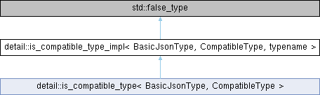 Inheritance diagram for detail::is_compatible_type_impl< BasicJsonType, CompatibleType, typename >: