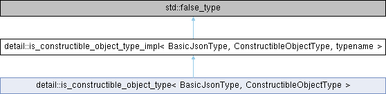 Inheritance diagram for detail::is_constructible_object_type_impl< BasicJsonType, ConstructibleObjectType, typename >: