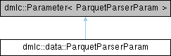 Inheritance diagram for dmlc::data::ParquetParserParam: